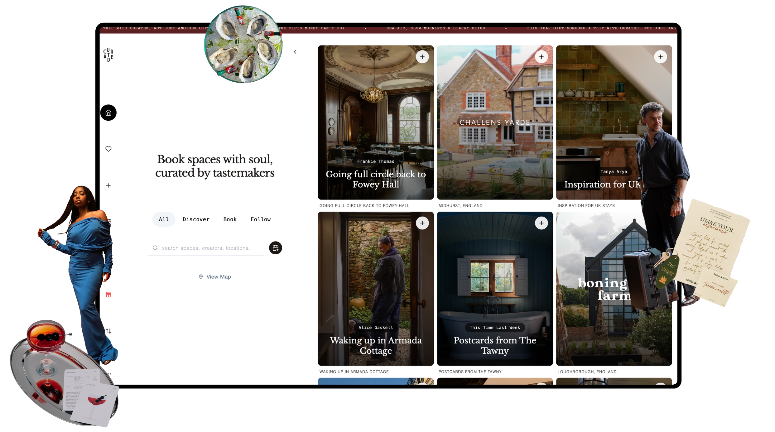 Curated is a travel platform built around human taste. We work with tastemakers who genuinely explore, stay, and spend time in the places they recommend - sharing not just where to go, but why it matters. The result is a calmer, more thoughtful way to discover beautiful, independent spaces that feel right long before you arrive.