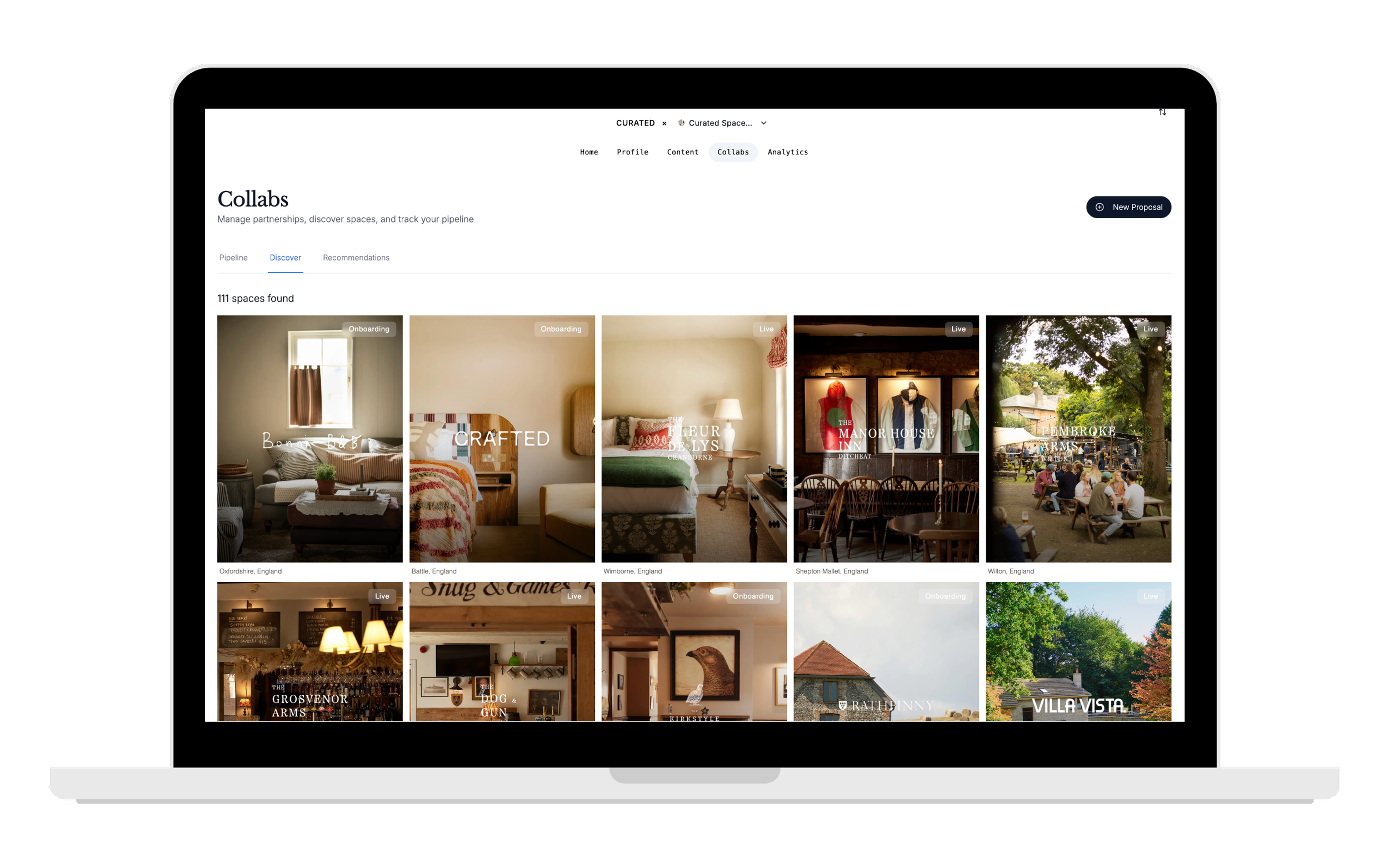 Head to the Collabs tab in your Curator dashboard to explore Curated’s handpicked collection of independent & soulful spaces. Focus on ones that match your: