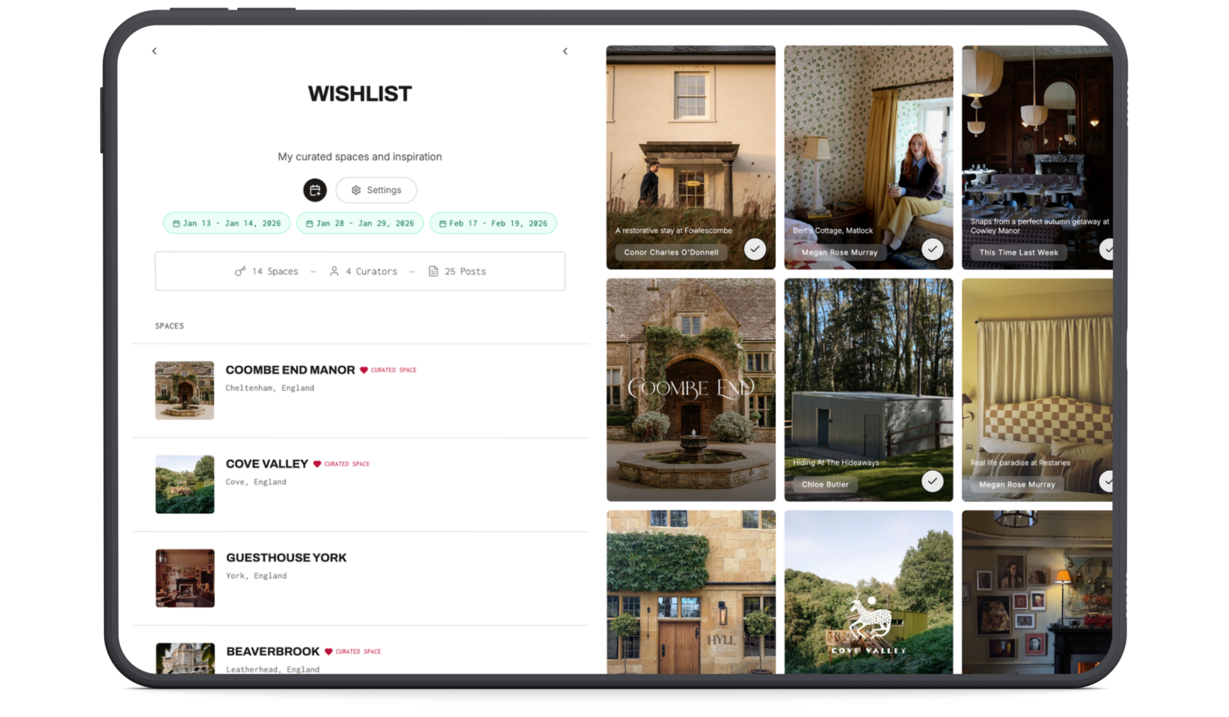 Most travel platforms do one thing. Curated connects discovery, content and booking into a single, seamless ecosystem built to help independent stays standout.
