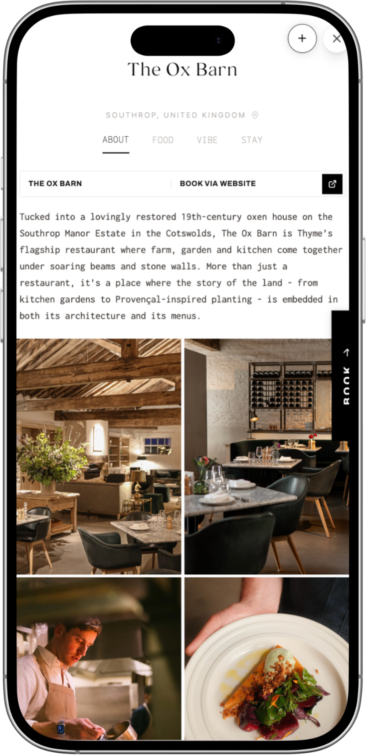 Thyme uses Curated's full ecosystem to do it justice: a design-led feature that captures the soul of the estate before guests arrive, a Digital Guestbook of authentic tastemaker stays that lets future guests feel what it's really like, standalone eatery listings for each of their exceptional restaurants, and Events to showcase the chef takeovers and moments that make Thyme more than just a place to sleep.